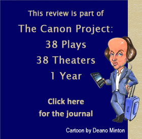 During intermission, I overhear a patron reading in her program that in the next scene, Timon, while digging for roots, finds a big bag of money. "So, there's hope," the patron tells her companion. "There's got to be a happy ending." Nope. Shakespeare and Middleton may not have finished the job, but what they gave us is "eerily transcendent." Still.